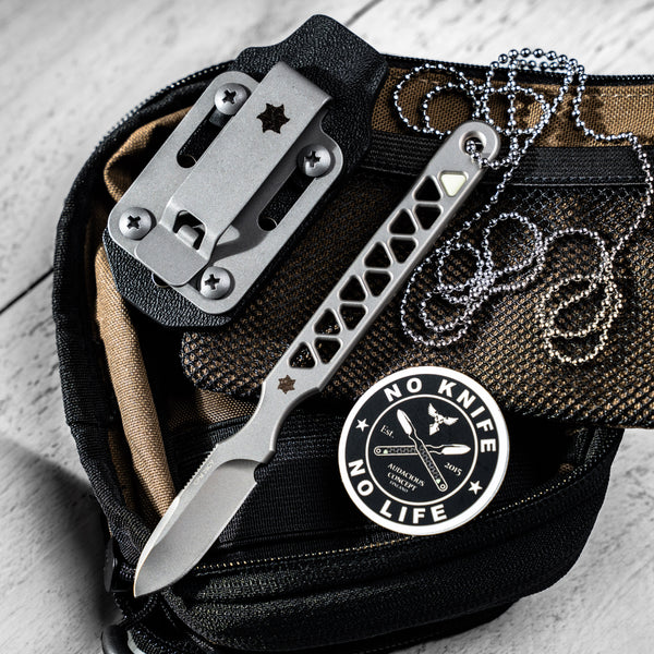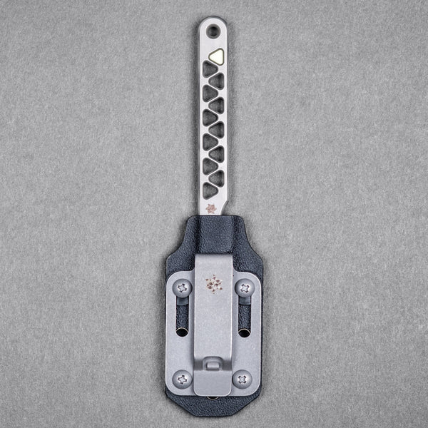 A custom Kydex neck sheath completes this finely-tuned edged instrument and allows you to carry it easily around your neck for instant deployment.
