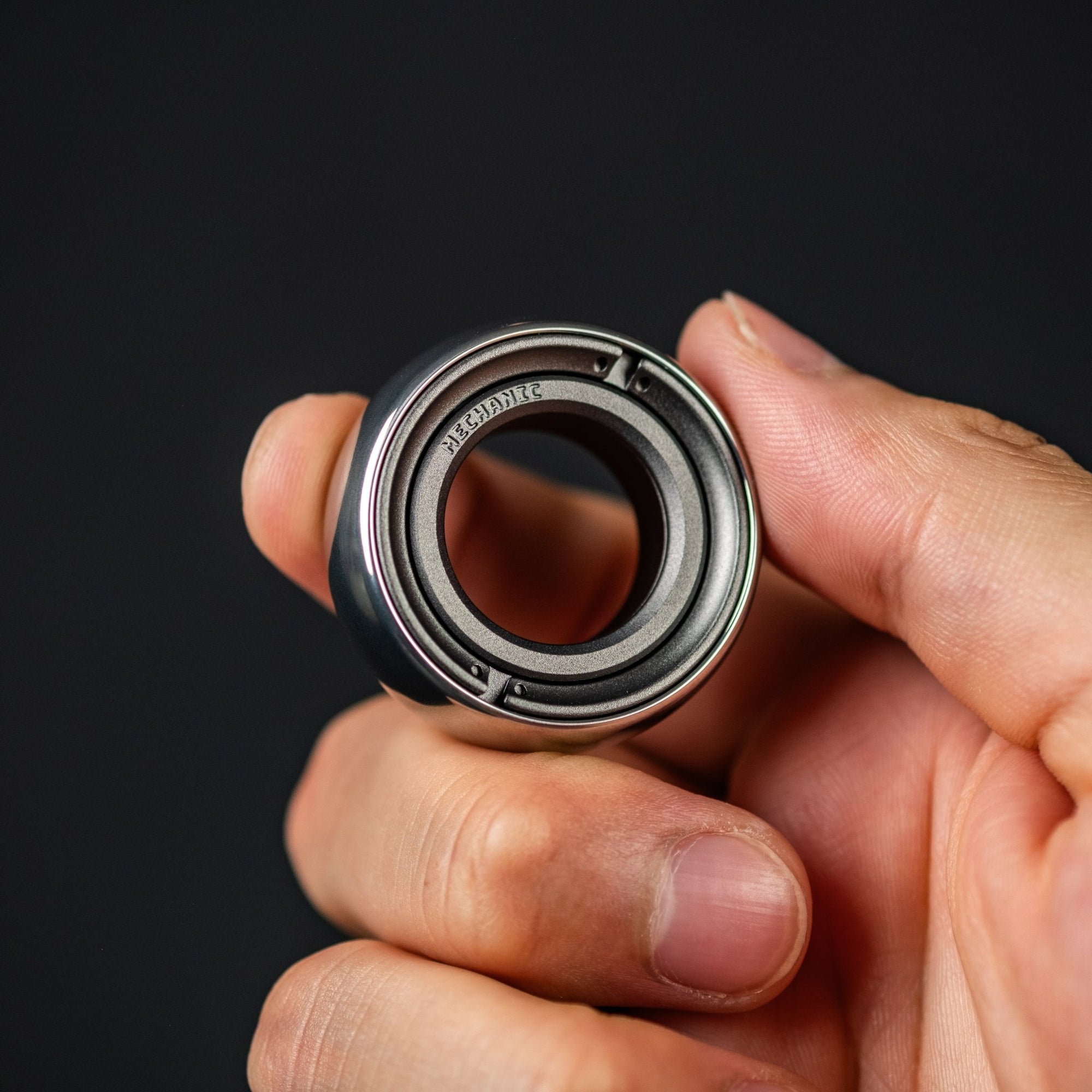 The Lautie Mechanic-C Fidget Ring in Stainless Steel & Aluminum represents the pinnacle of tactical fidget engineering, where industrial-grade materials meet meticulous German precision. This is a sophisticated mechanical instrument that transforms nervous energy into focused calm through the satisfying interaction of precision-machined components.