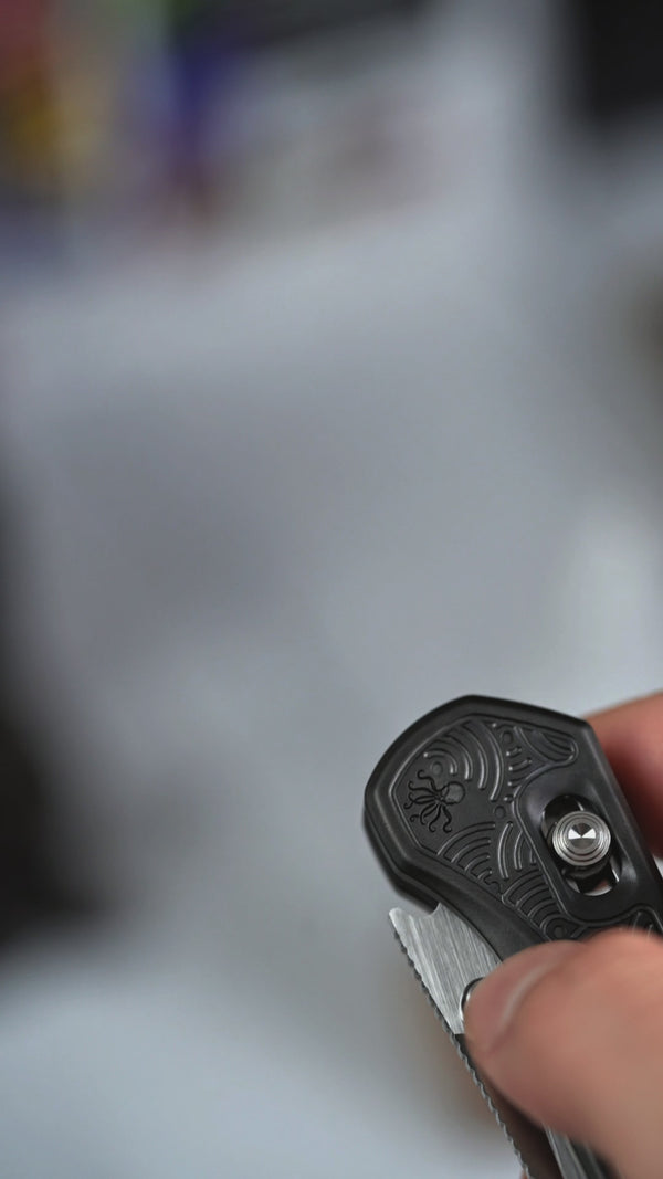 The titanium scales (which are removable!) feature a meticulous DLC bead blast finish, along with our trademark Chaos Seigaiha™ wave pattern milling, which further enhances the grip and handling. This provide both functional grip texture and visual depth, representing endless waves of good luck and prosperity. A low-profile and matching milled titanium pocket clip completes the package.